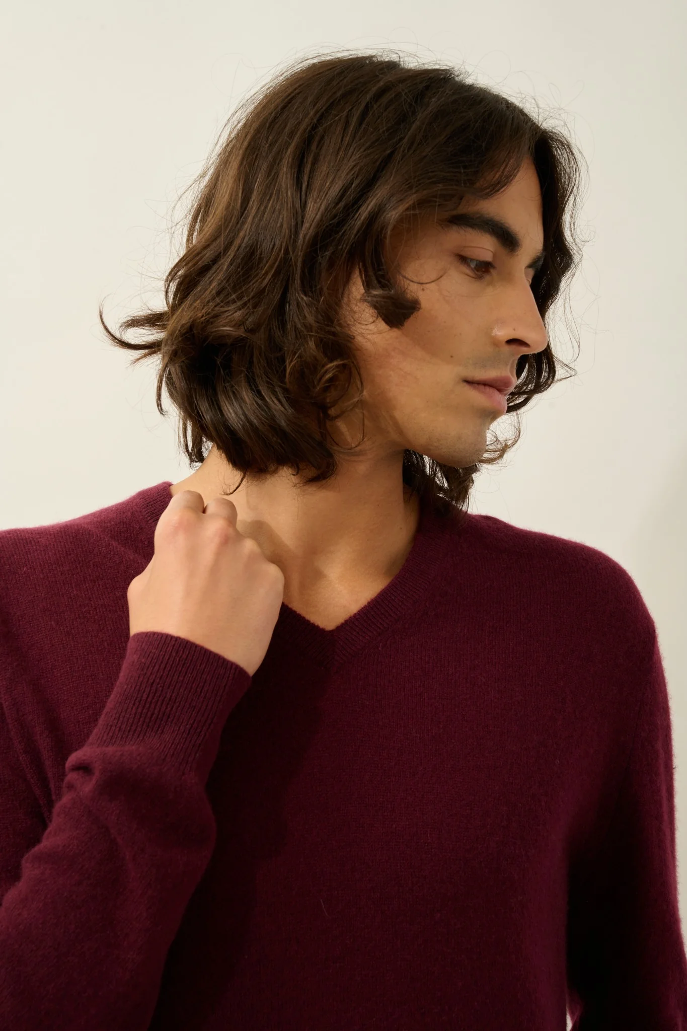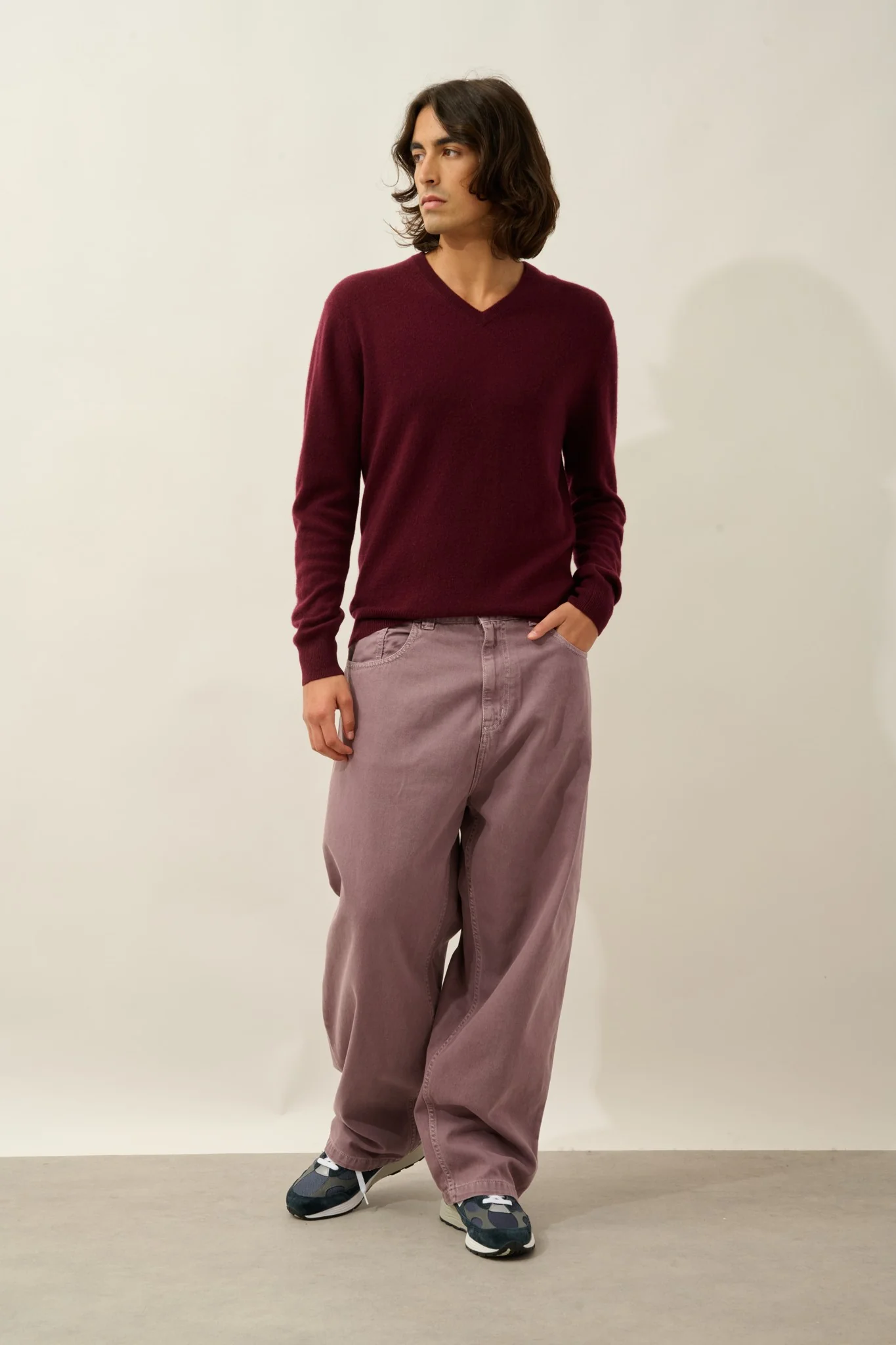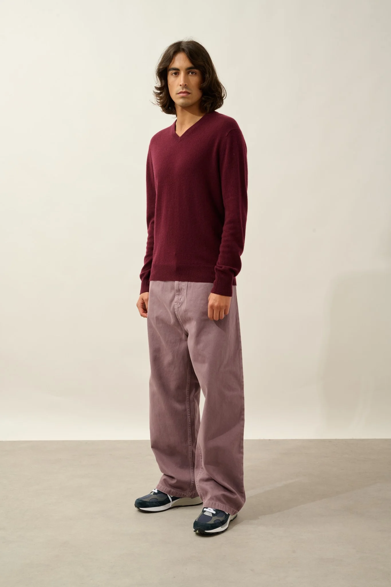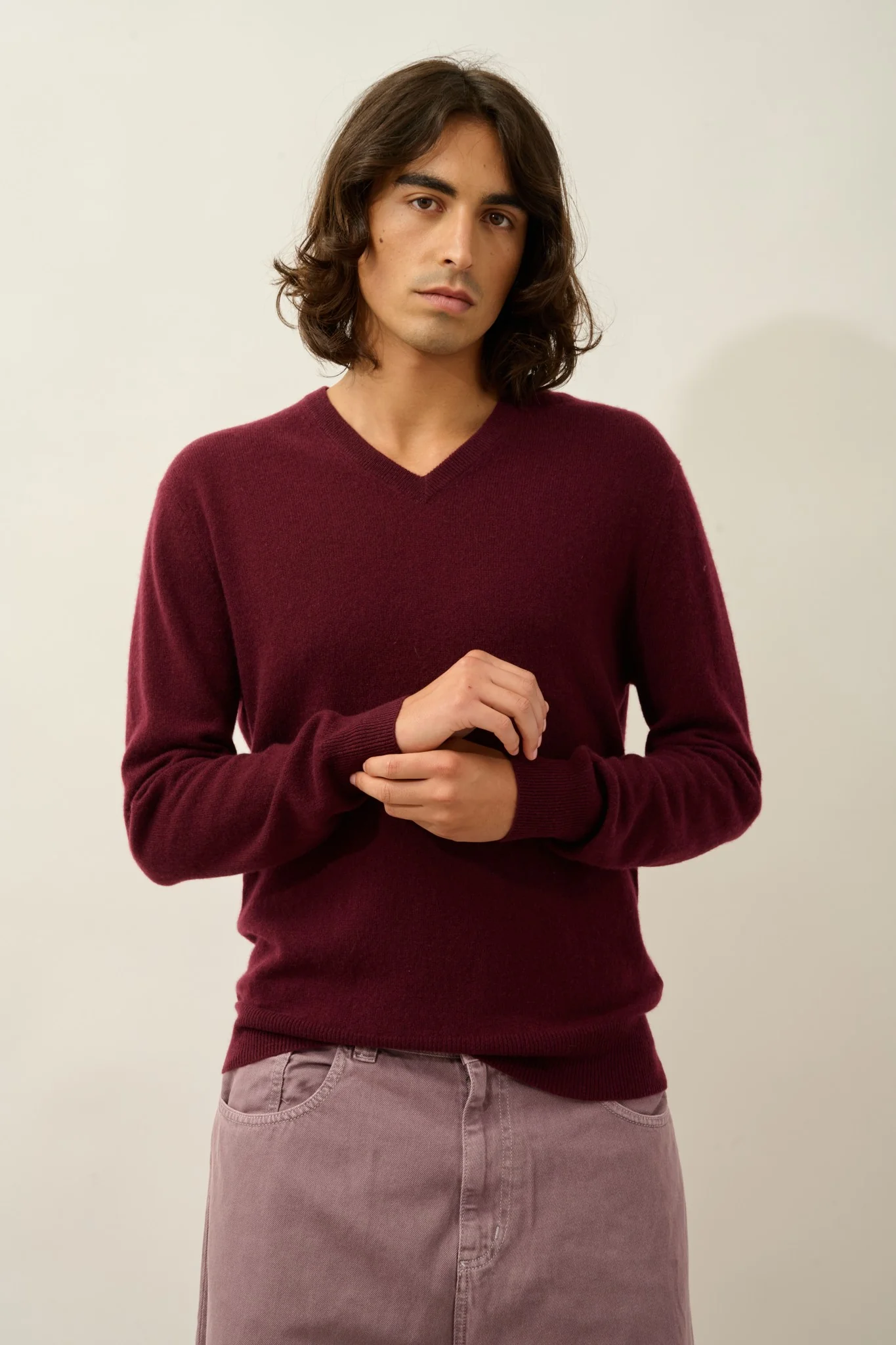 AGEL pull col v mûre 100% cachemire