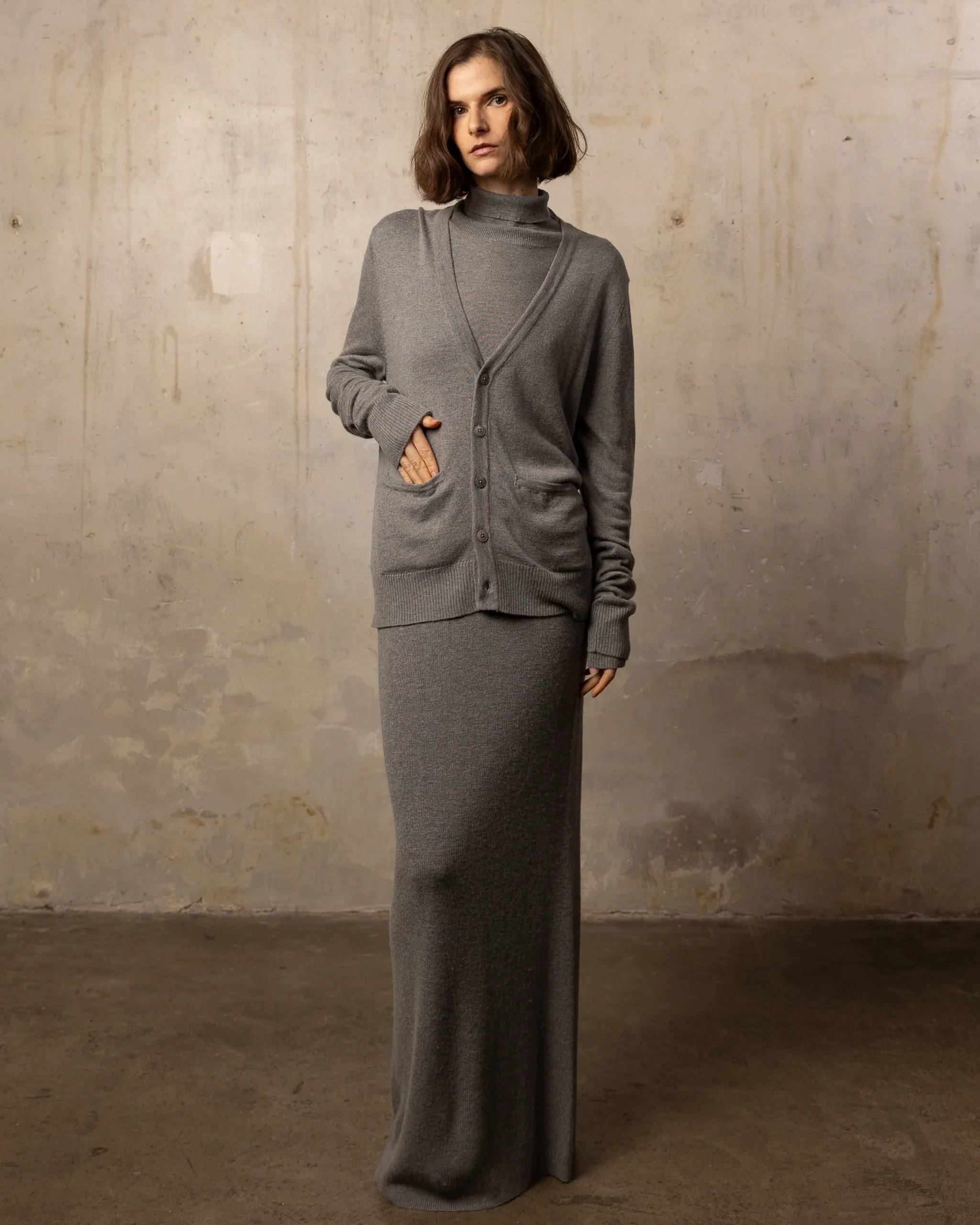 Un modèle à manches longues et coupe droite, qui mise sur la simplicité et la douceur.