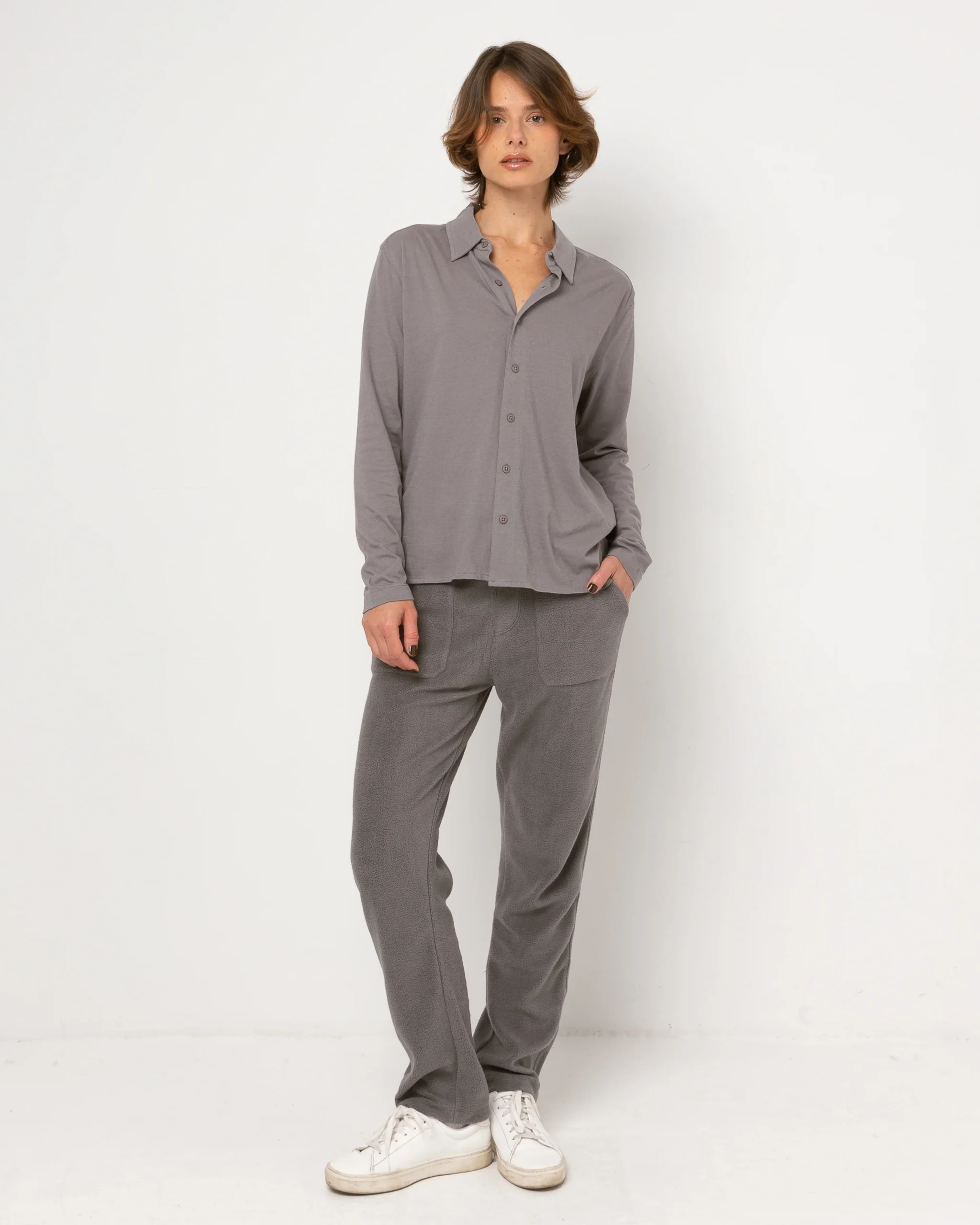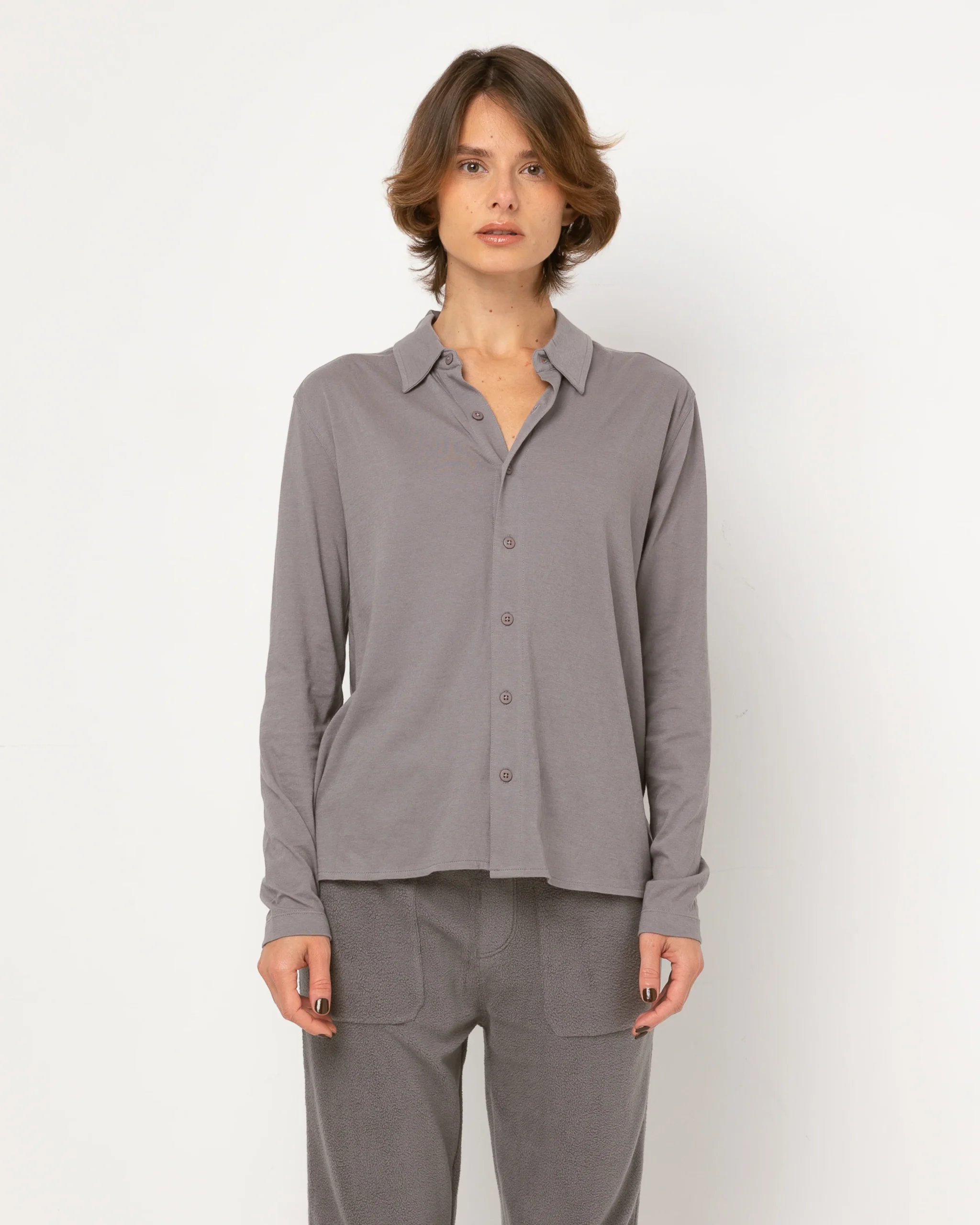 Une chemise souple, coupe droite, manches longues.