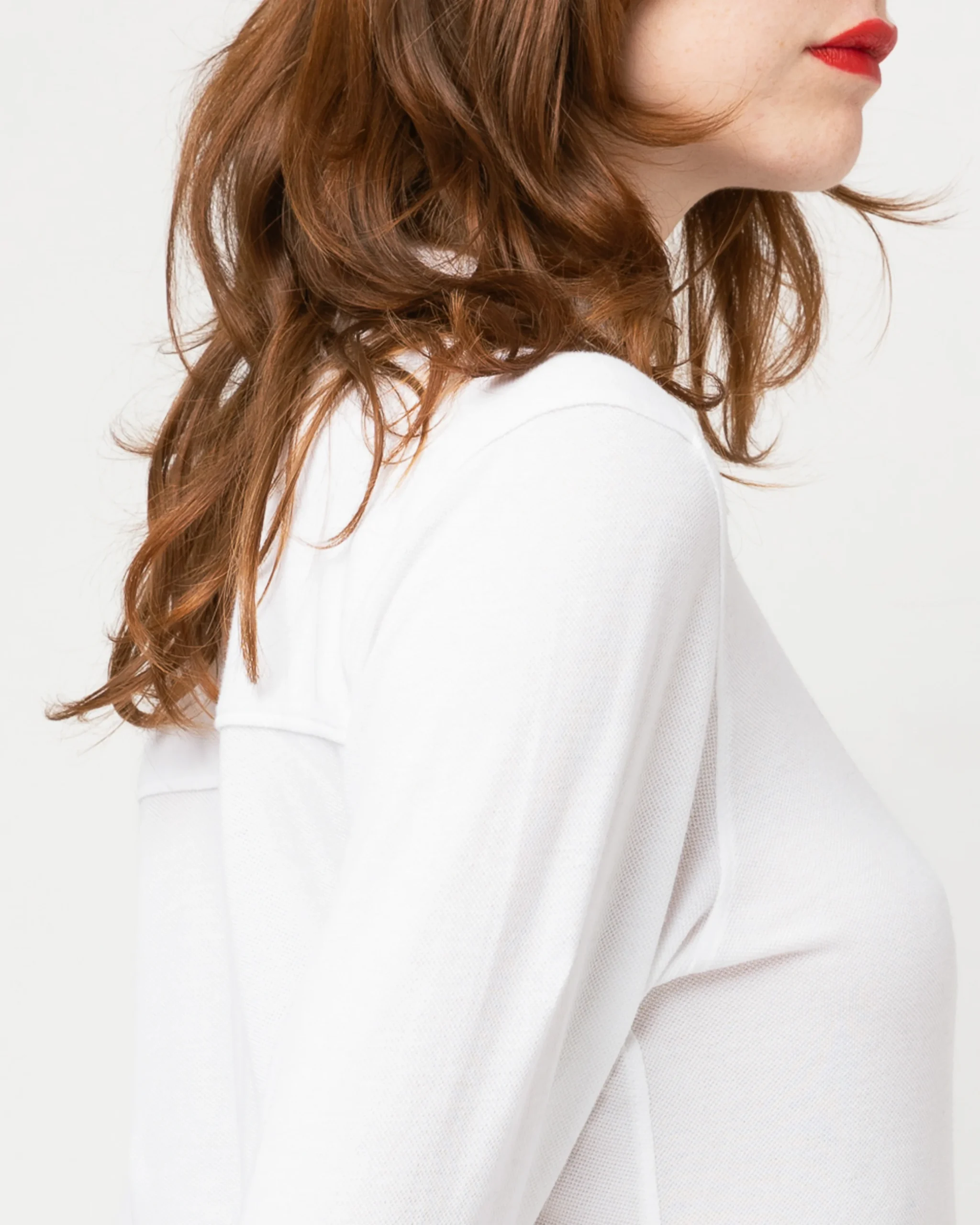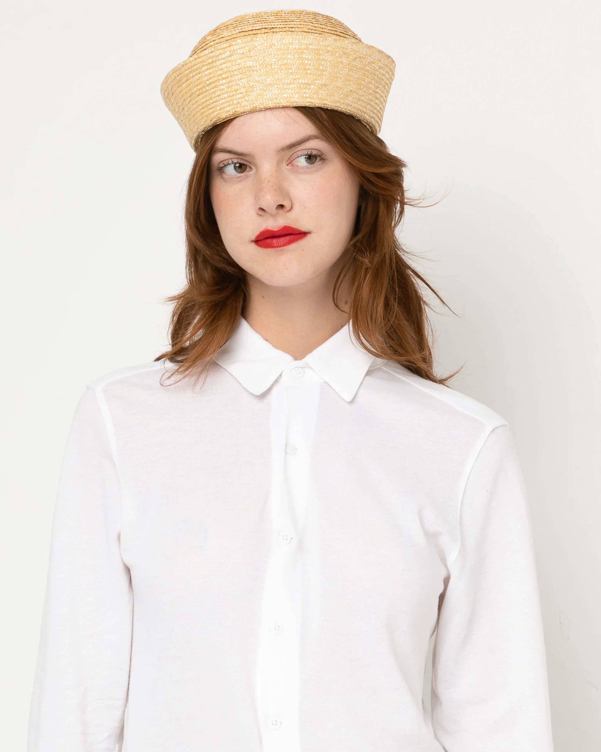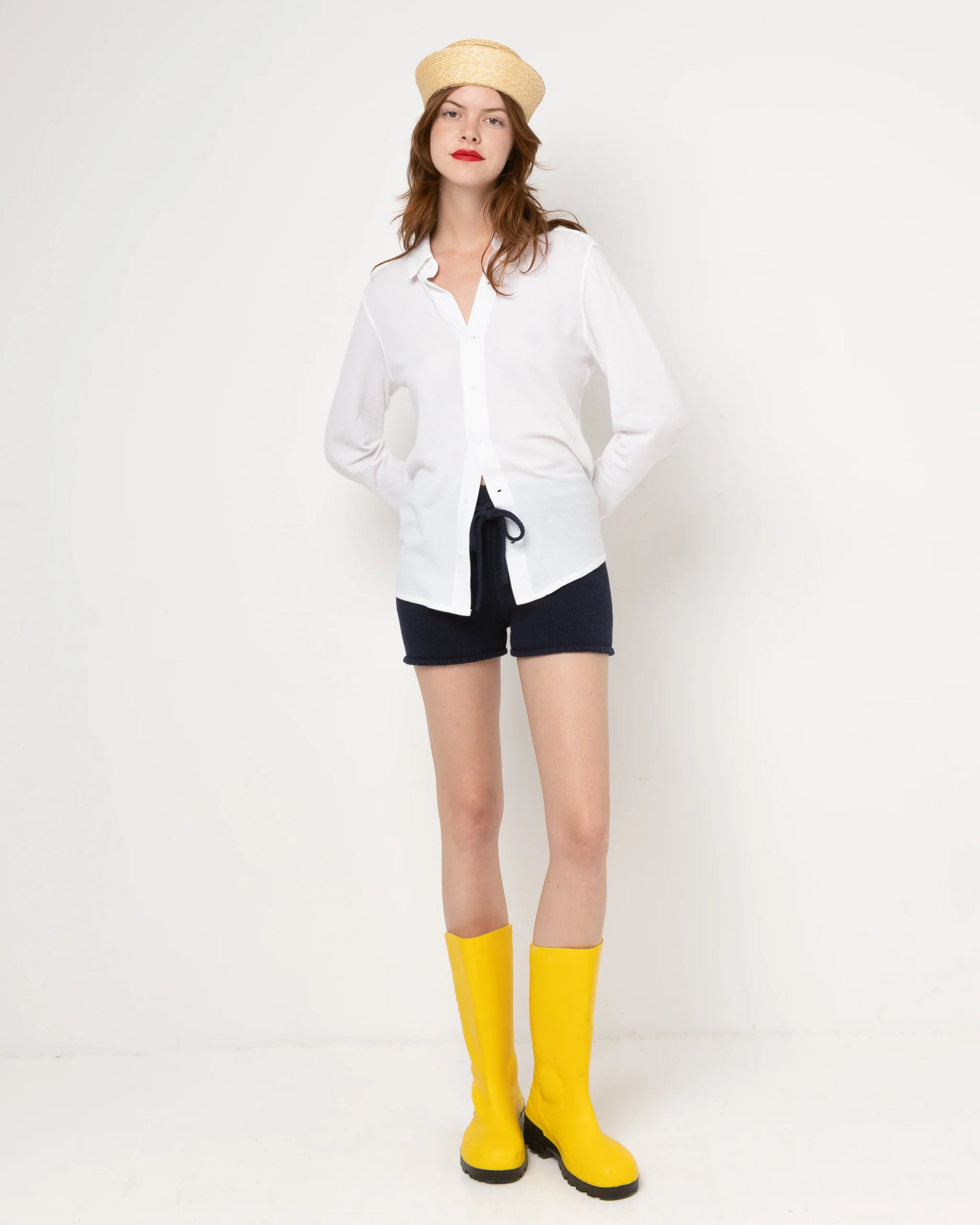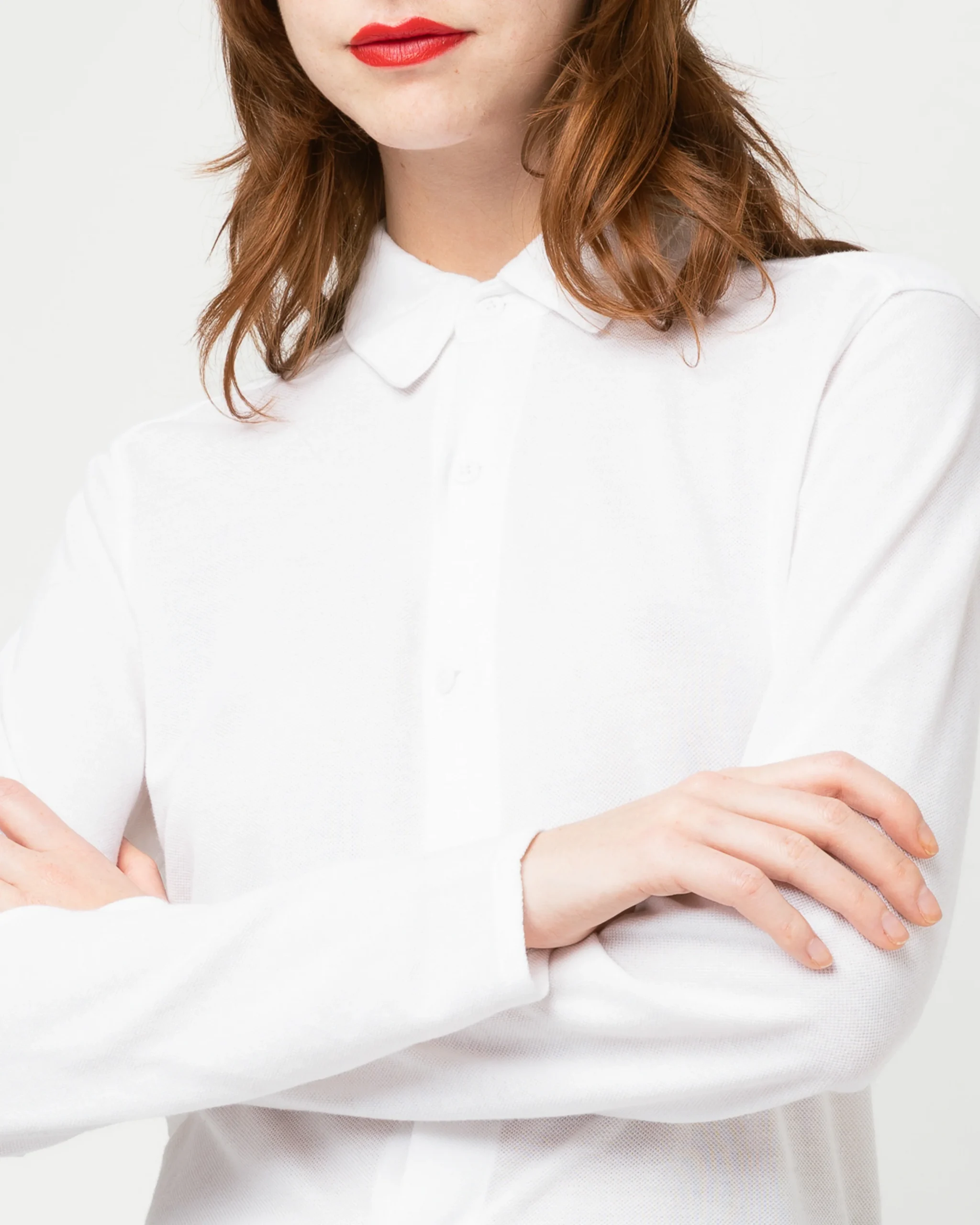 Une chemise coupe droite avec un empiècement épaule et le bas arrondi.