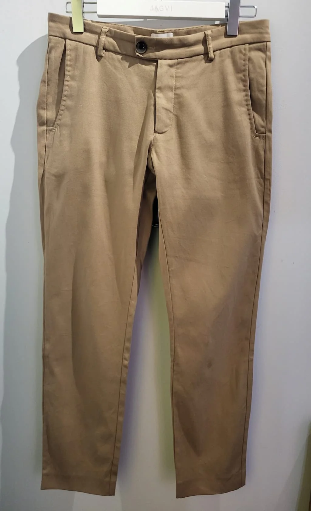 Pantalon en coton BIO léger stretch beige avec un style très contemporain et urbain à la fois. 2 poches devant, 2 poches boutons arrière, fit confort et ajusté. Un indispensable de la collection printemps été 2024.