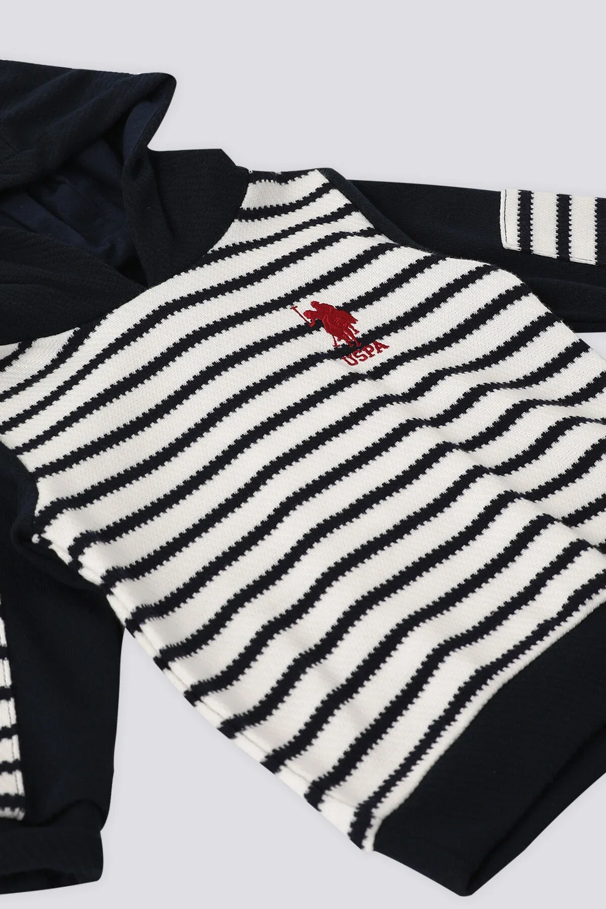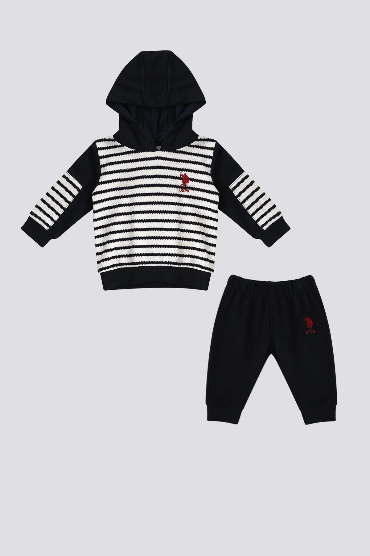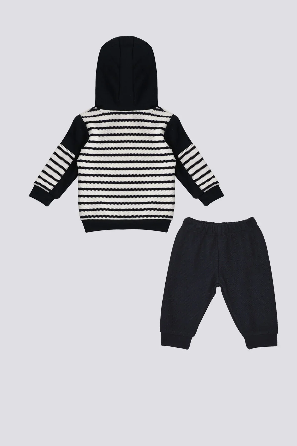 Ensemble 2 pièces à capuche et rayures Bleu marine – USB1465-V1
