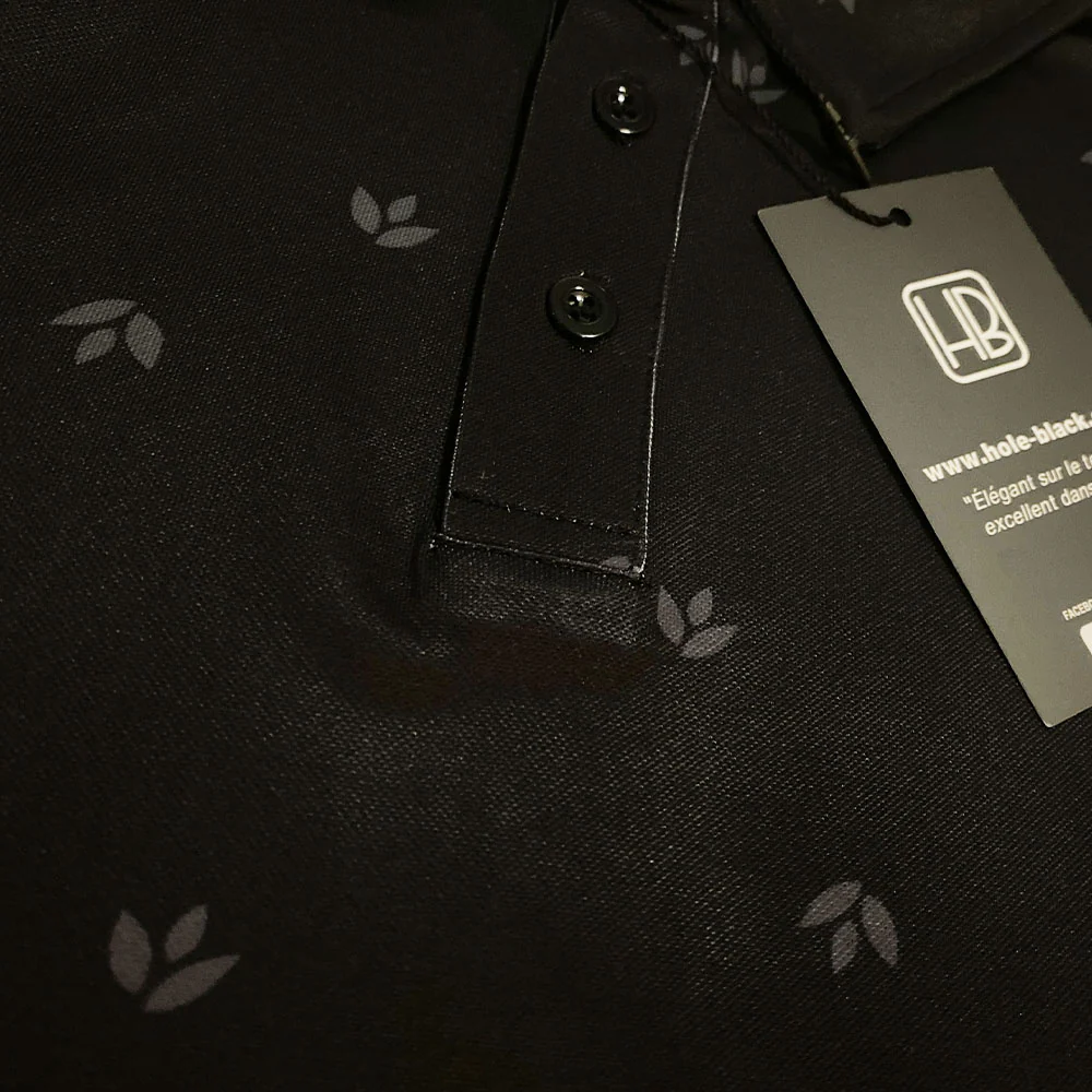 HB Fusion Polo de golf Homme Noir Fleurs Grises SS25