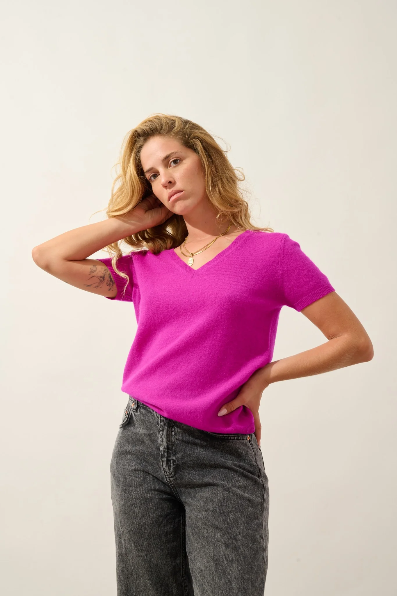 Soyez le premier à laisser votre avis sur “KALI t-shirt col v hibiscus 100% cachemire”
