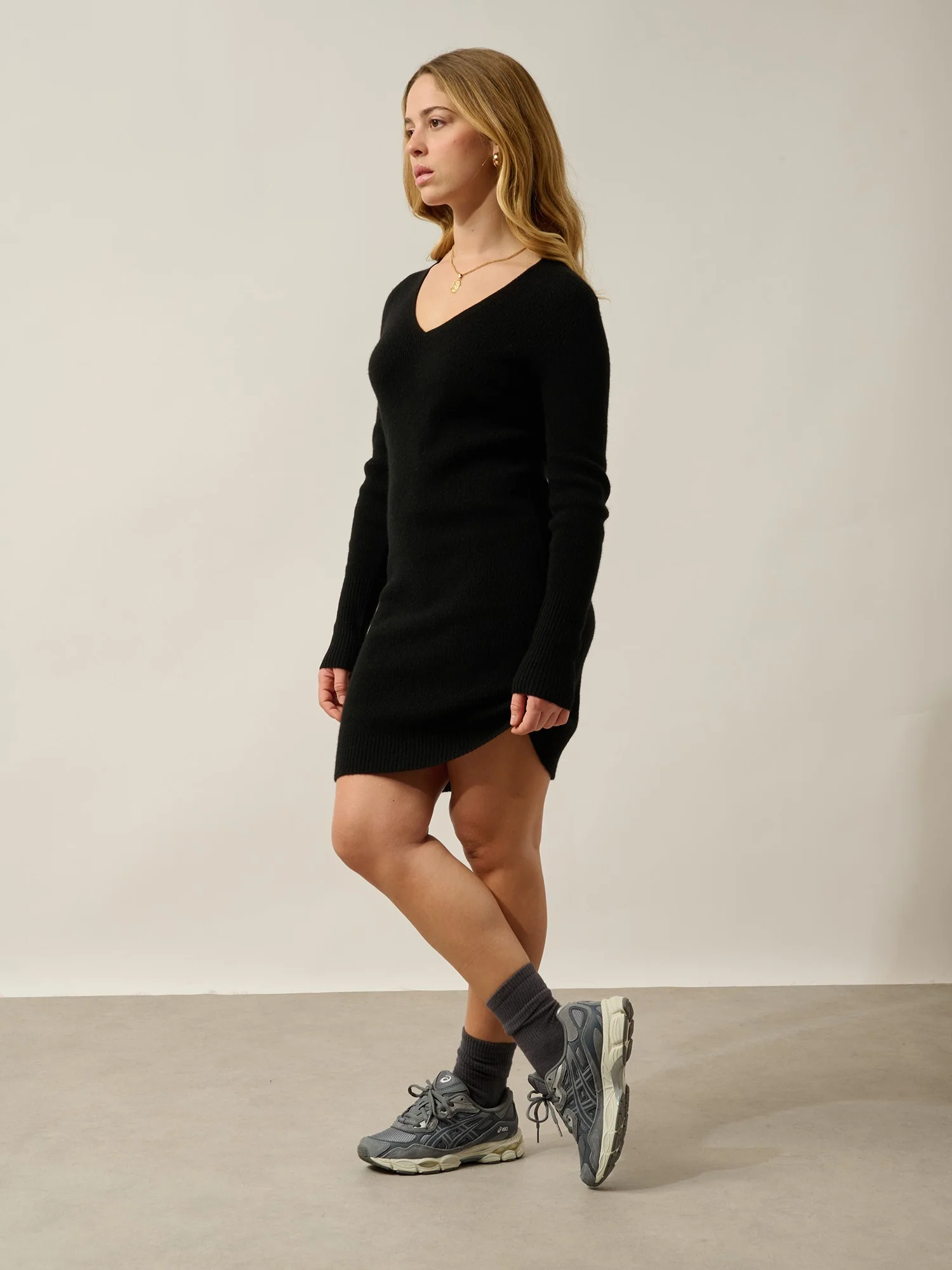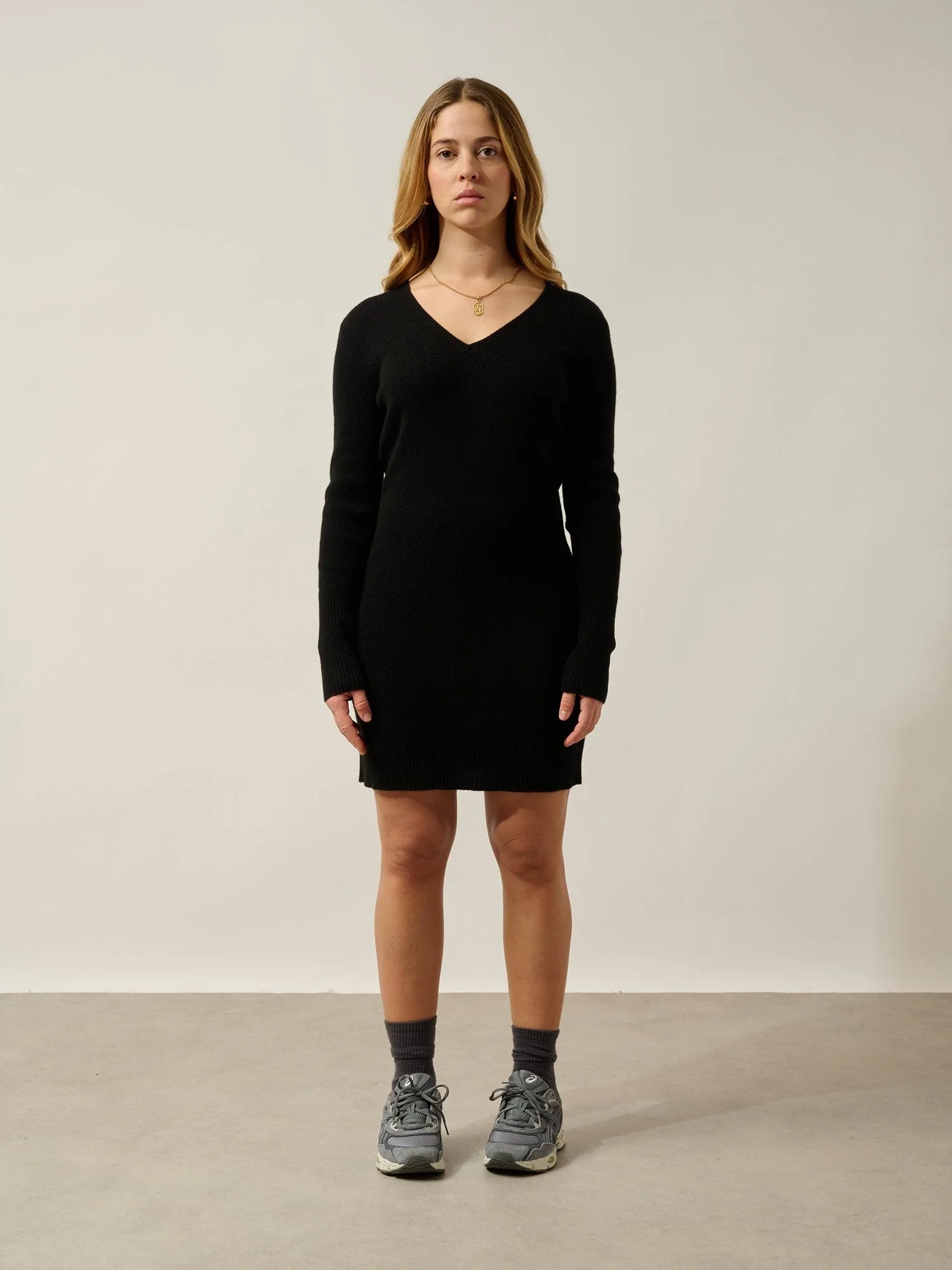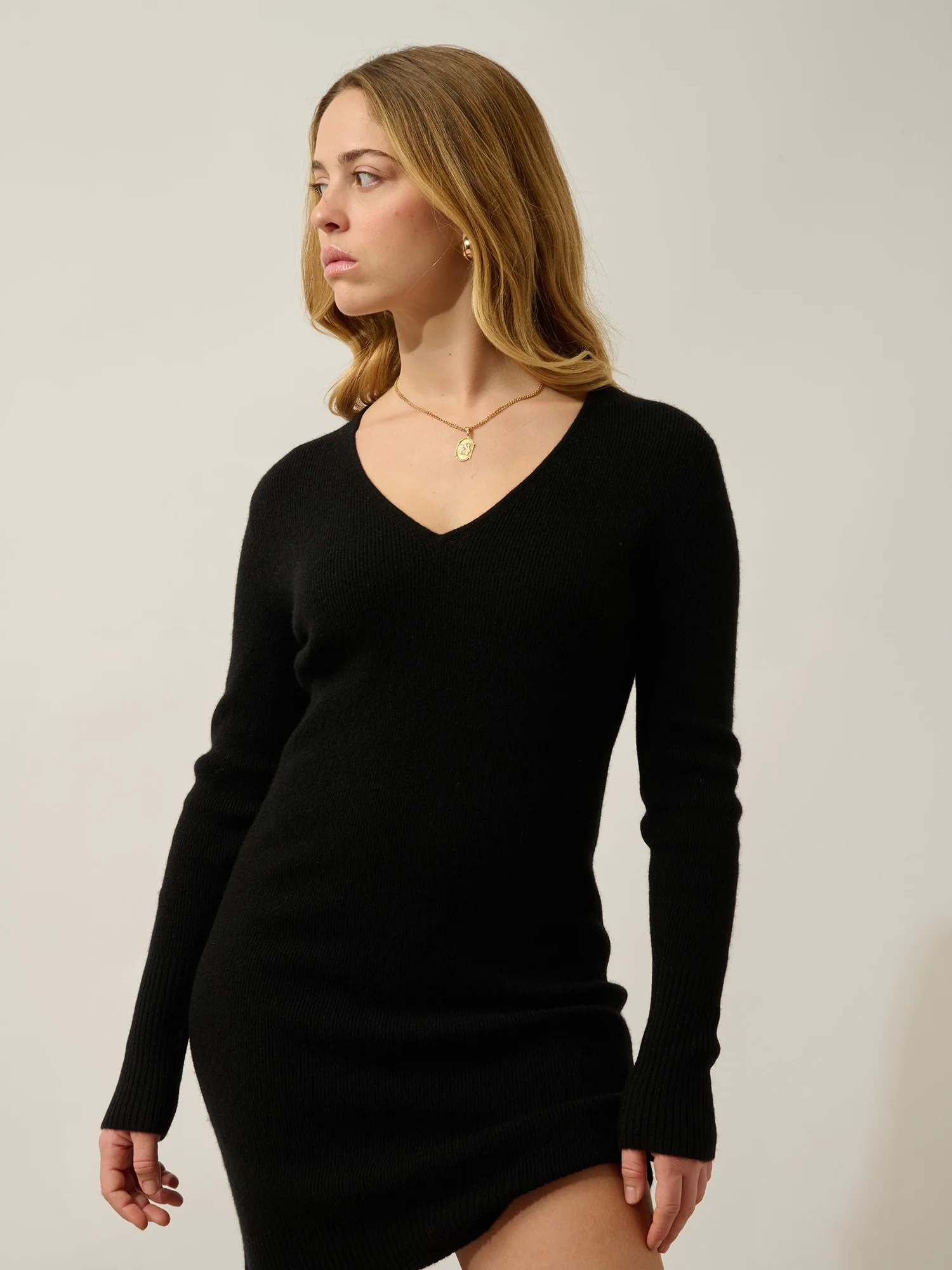 MAEN robe col v noir 100% cachemire