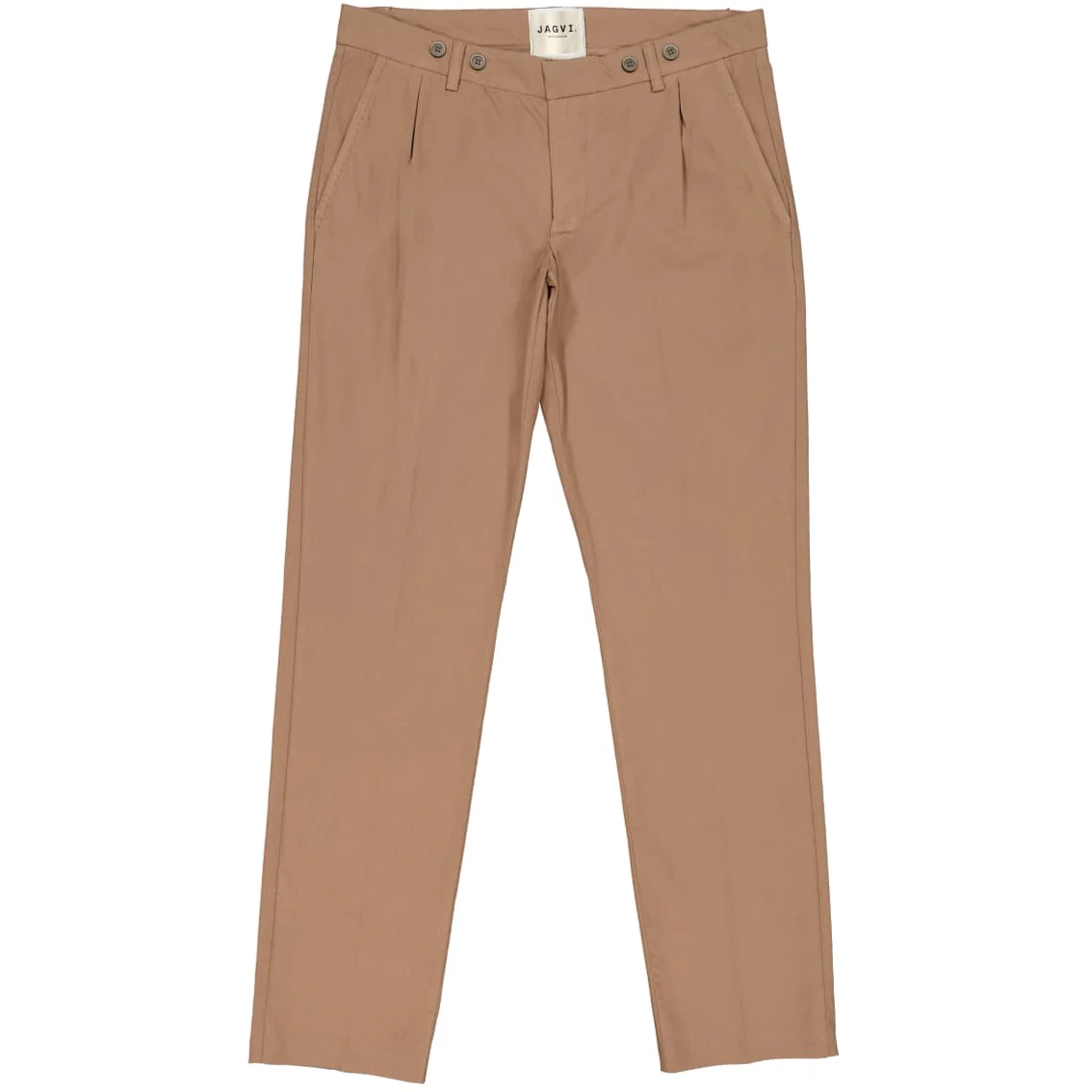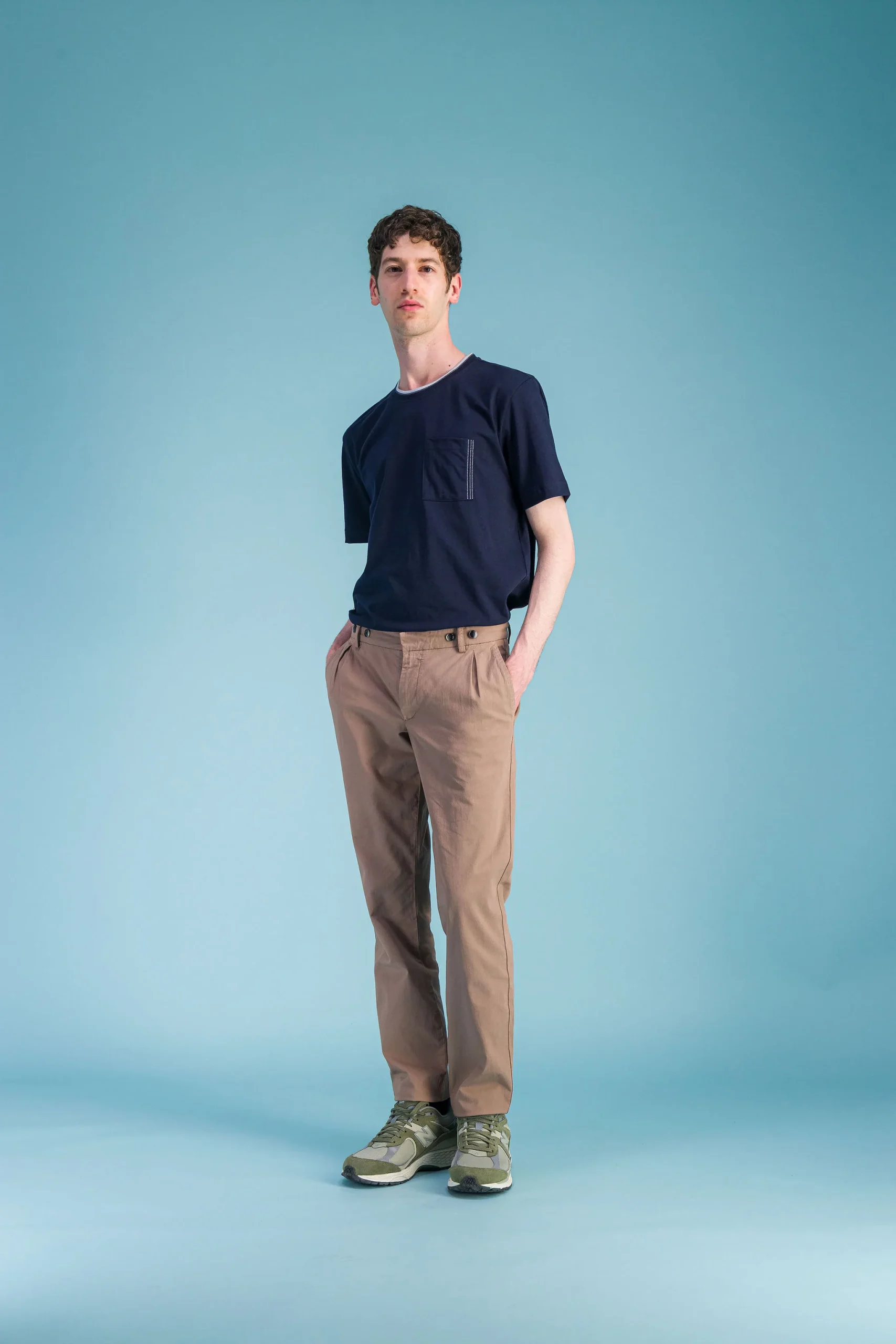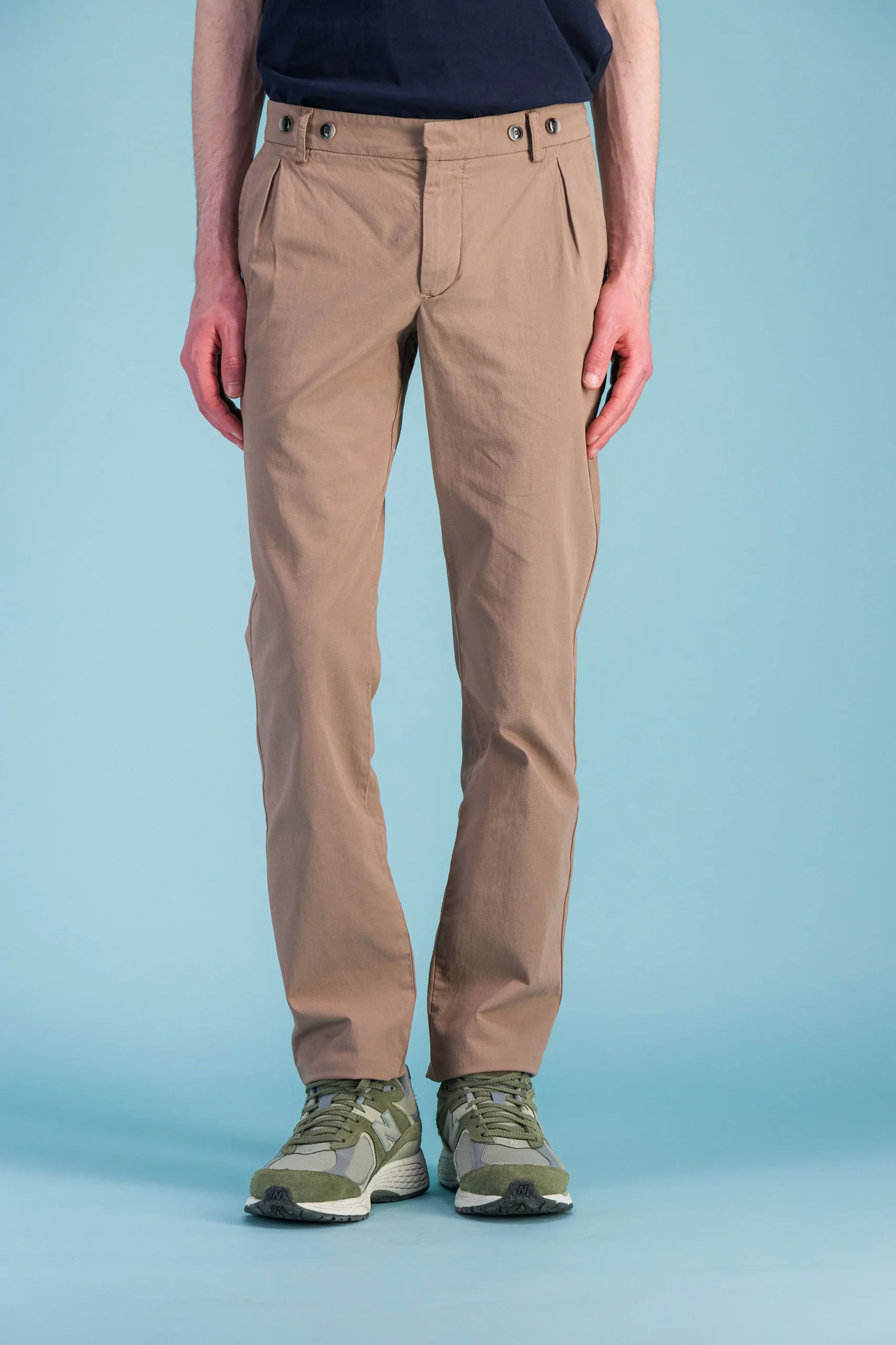 City pant 2 Un pantalon en coton léger stretch de couleur beige sable, à pinces, avec un style contemporain. Parfait pour habiller une tenue office et minimaliste à fois.