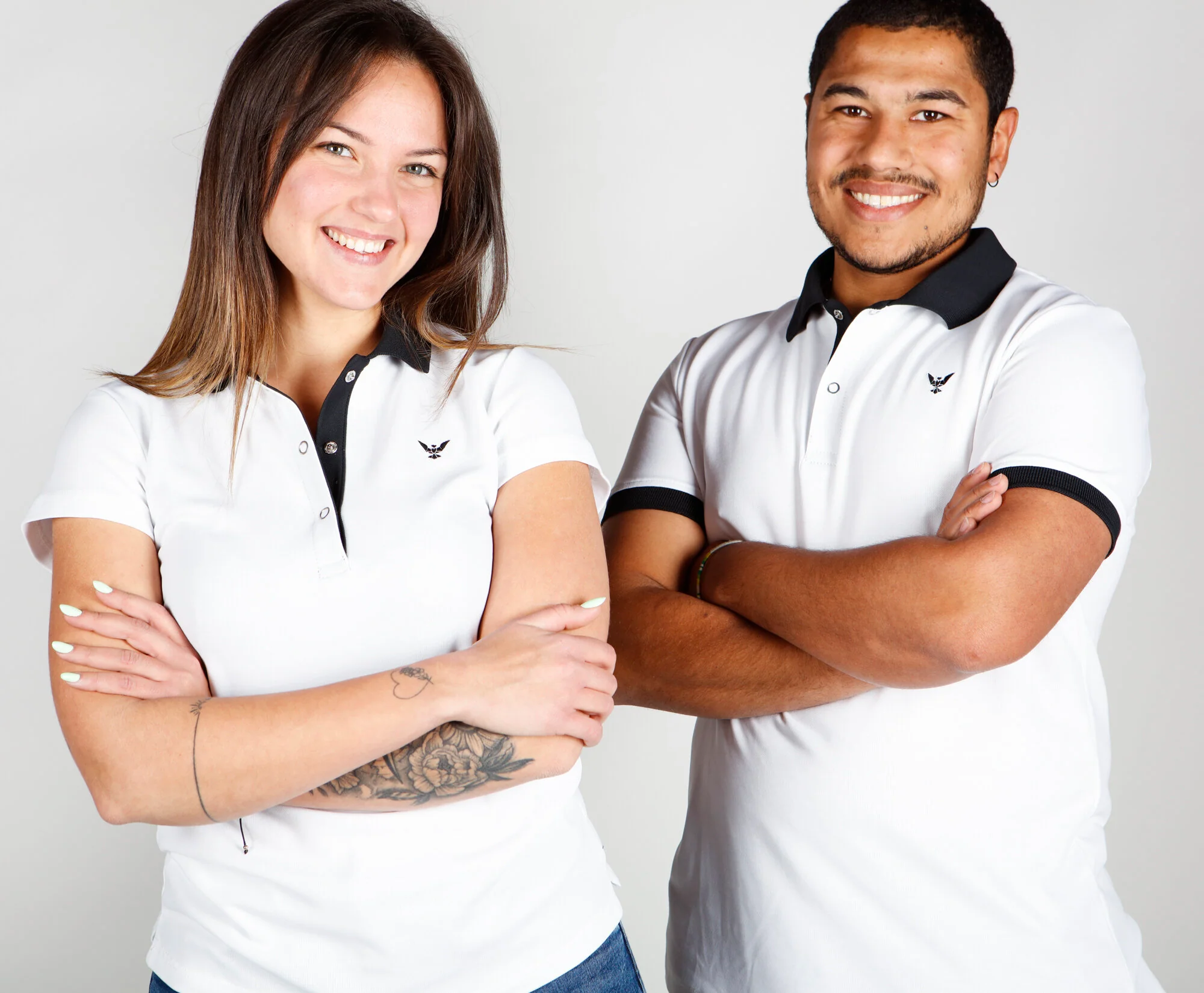 Le Polo Fenyx en mode bicolore. Noir et blanc à broderie noire