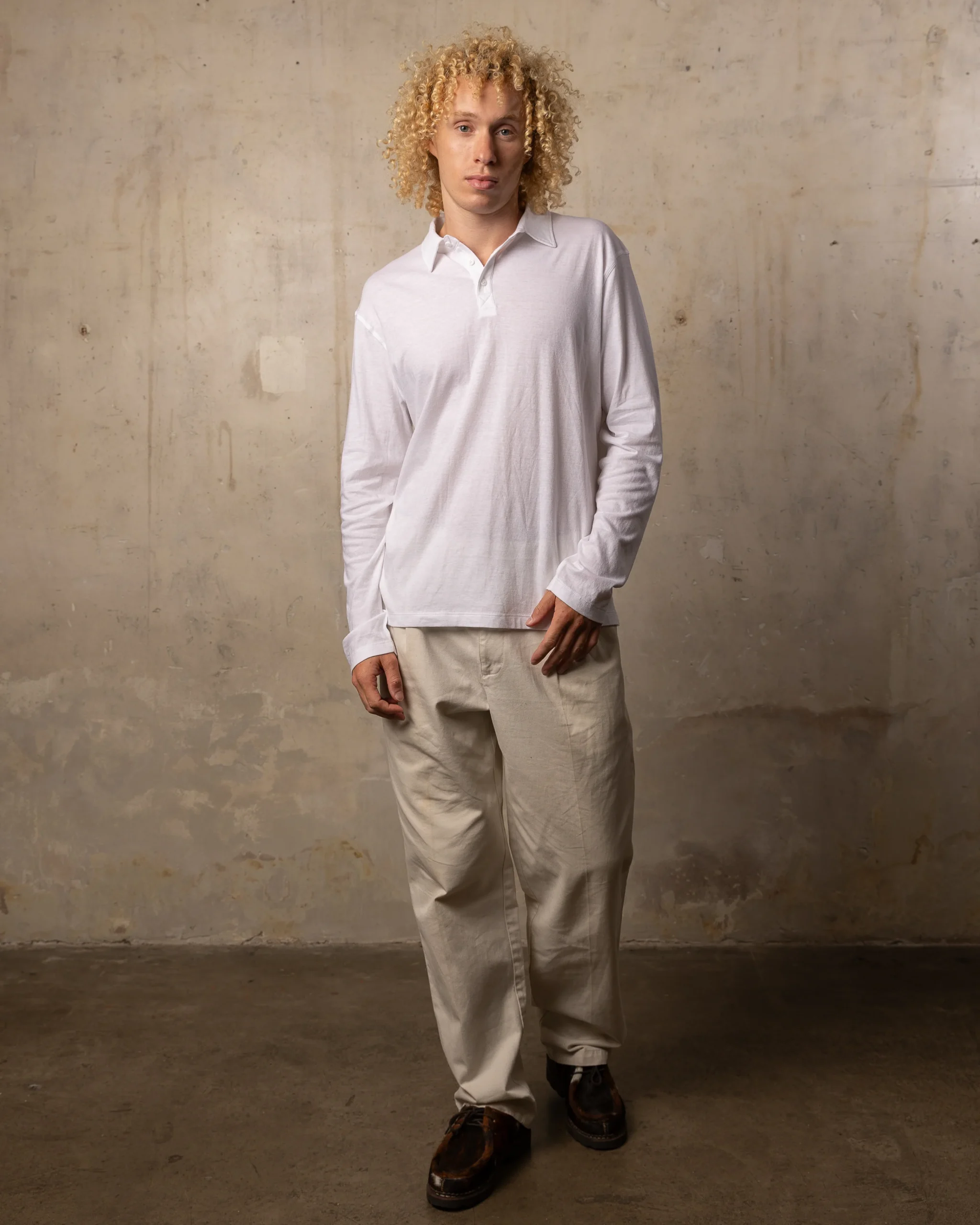 Un t-shirt à col polo manches longues, coupe droite pour un porté simple et confortable