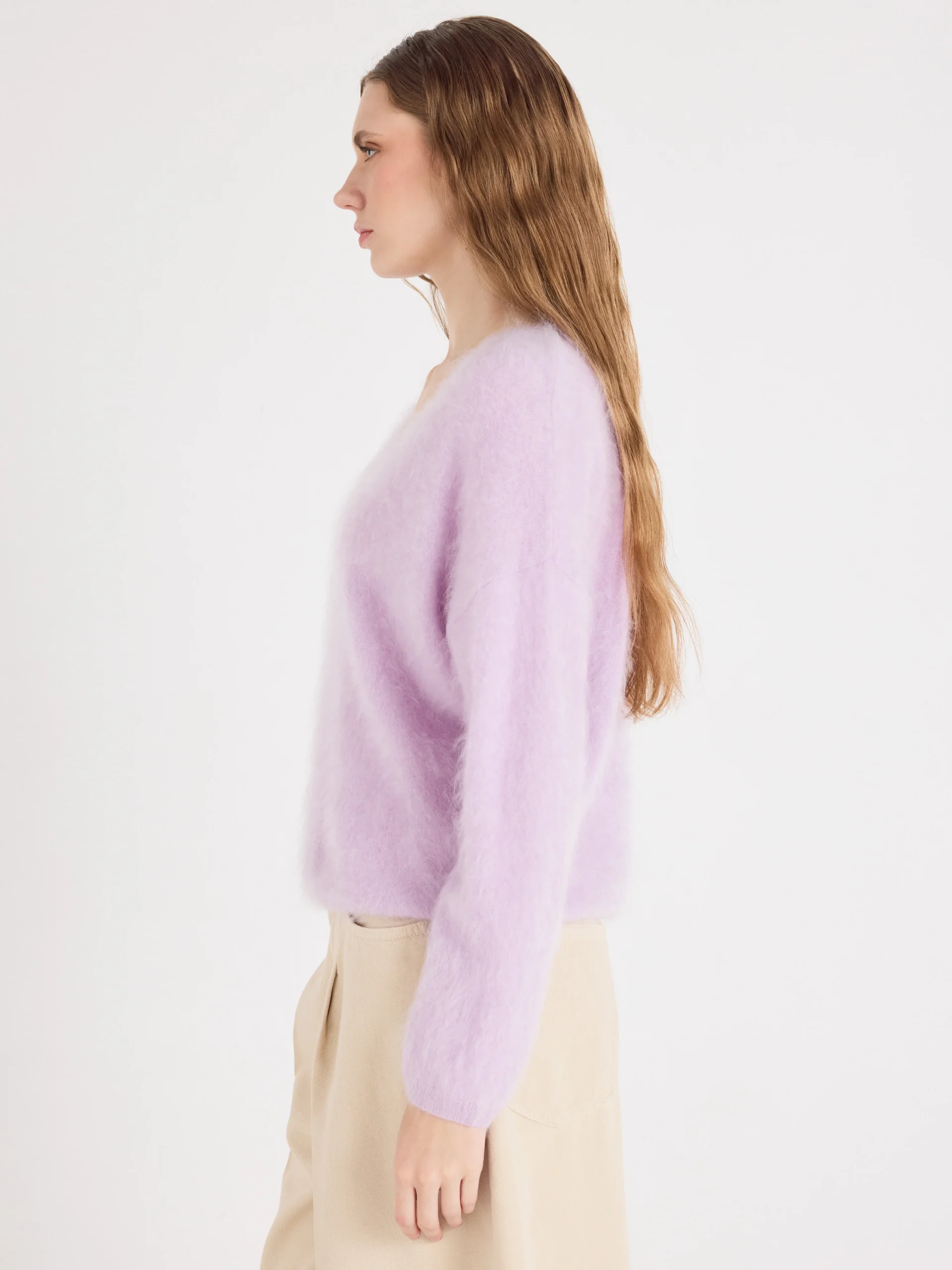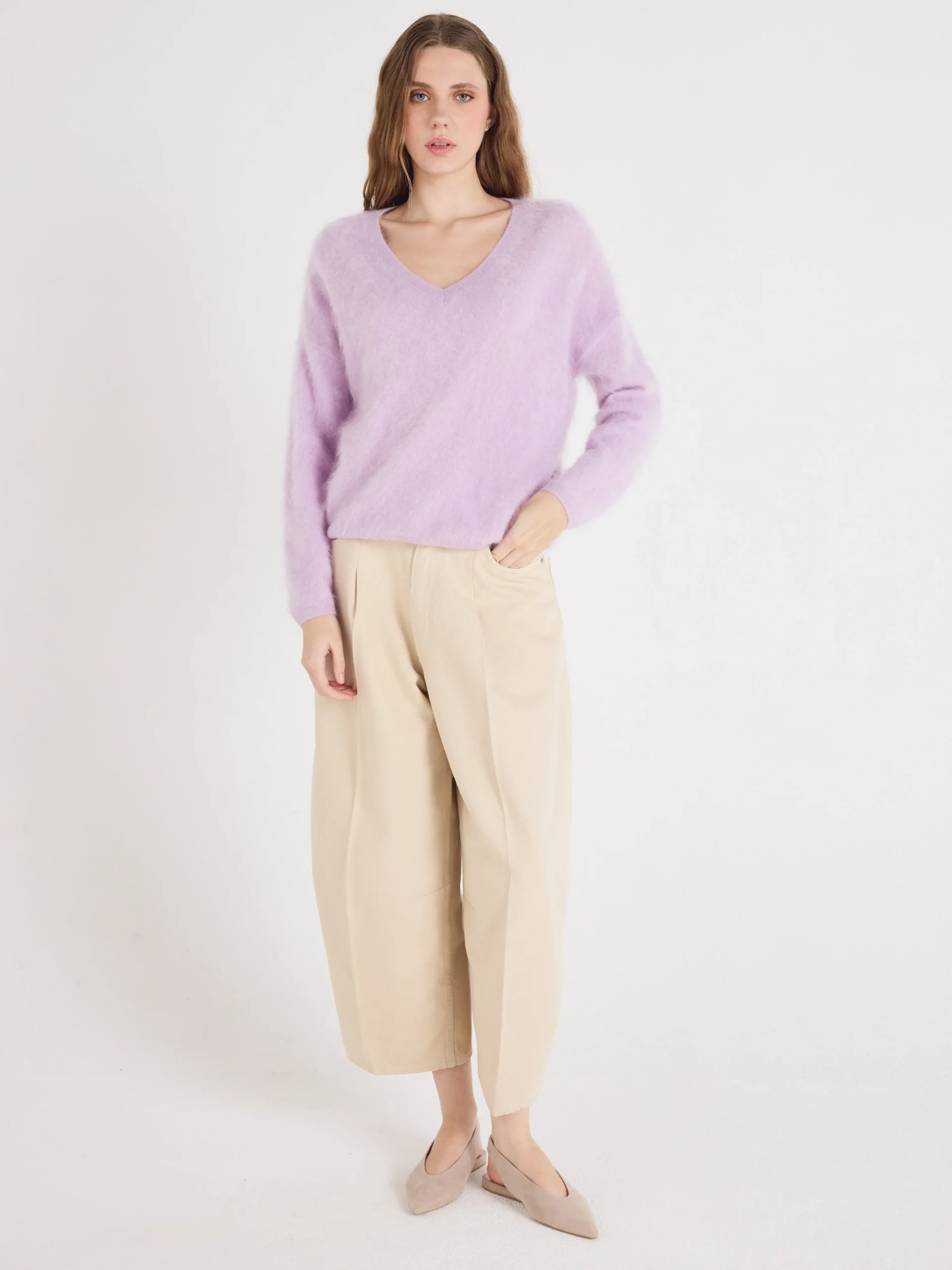 Pull oversize col V en cachemire brossé pour femme